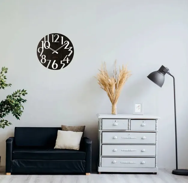Duży efektowny drewniany czarny zegar ścienny do salonu holu recepcji LAVVU Style Black Wood LCT1010. Mechanizm kwarcowy. Średnica 40 cm