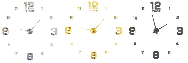 Montaż zegara jest szybki i wygodny. Tarcza ze wskazówkami jest do zamontowania na haczyk. Elementy dekoracyjne montuje się do ściany za pomocą taśmy montażowej na gładkie powierzchnie. Każdy element jest podklejony taśmą. Zegar posiada szablon dzięki czemu w łatwy i precyzyjny sposób rozmieścisz elementy na ścianie w dowolnym rozmiarze od 70 cm - 130 cm.