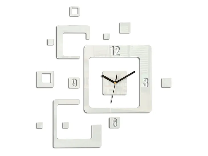 Montaż zegara jest szybki i wygodny. Tarcza ze wskazówkami jest do zamontowania na haczyk. Elementy dekoracyjne montuje się do ściany za pomocą taśmy montażowej. Każdy element jest podklejony taśmą. Zegar posiada szablon dzięki czemu w precyzyjny sposób rozmieścisz elementy na ścianie.