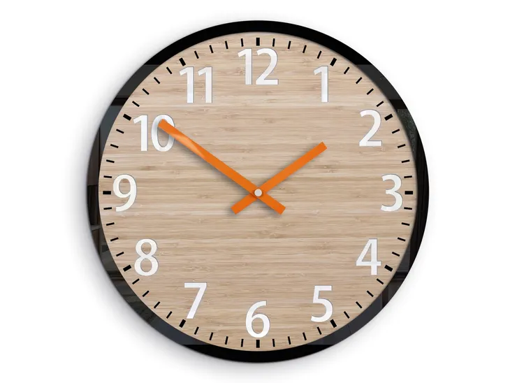 Tarcza zegara jest wykonana z bambusa. Zegar dodatkowo posiada czarną obwódkę ze szkła akrylowego o wysokim połysku. Z pewnością świetnie posłuży jako dekoracja ścienna w Twoim salonie, biurze lub sypialni. Świetnie wpasuje się w nowoczesne i klasyczne wnętrza. Będzie ciekawym uzupełnieniem wnętrz w różnych kolorach i aranżacjach. Zegar zaopatrzony jest w płynący mechanizm kwarcowy, bez efektu tykania. Cyfry są trójwymiarowe w kolorze białym, a wskazówki pomarańczowe. Indeksy są czarne. Średnica tarczy to 30 cm. Zapakowany jest w sztywne i eleganckie pudełko, dzięki czemu będzie idealnym prezentem. Montaż zegara jest szybki i wygodny. Tarcza ze wskazówkami jest do zamontowania na haczyk. Produkt pochodzi od polskiego producenta.