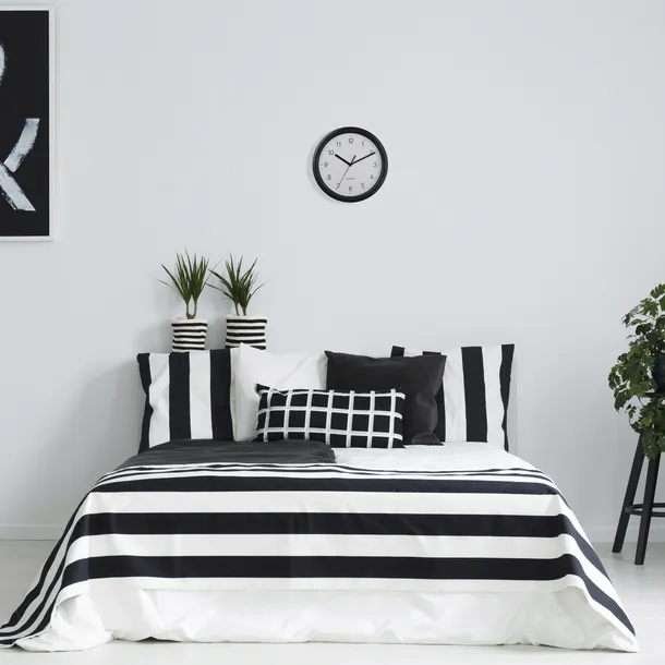 - Zegar w czarnej obudowie, całość wykonana w czytelnej kolorystyce tarcza z czarnymi cyframi