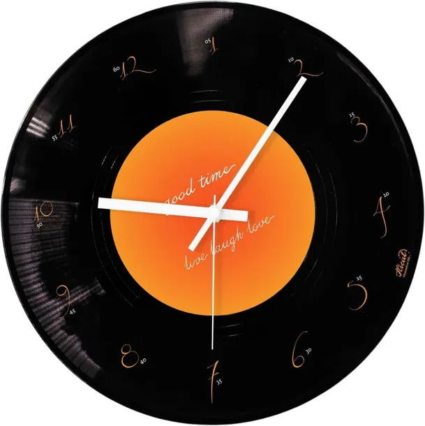 Zegar ścienny inspirowany wyglądem płyty winylowej to oryginalny element wystroju, który łączy w sobie ponadczasowy styl retro z nowoczesnym minimalizmem. Klasyczna czarna tarcza z kontrastowym, pomarańczowym środkiem oraz wyraziste białe wskazówki tworzą spójną, estetyczną całość. Dzięki temu zegar pełni nie tylko funkcję praktyczną, ale również dekoracyjną, nadając pomieszczeniu niepowtarzalny charakter. Cichy mechanizm gwarantuje komfort użytkowania, a sam design sprawia, że zegar staje się efektownym akcentem na każdej ścianie.