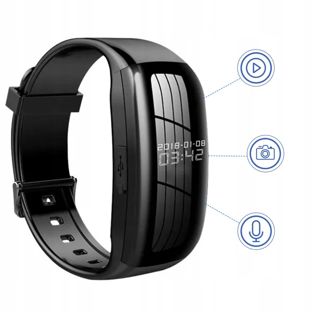 ✅NAJLEPSZY ZEGAREK SZPIEGOWSKI NA ! KAMERA, APARAT I DYKTAFON W JEDNYM URZĄDZENIU! Smartband z funkcją nagrywania dźwięku, obrazu i wykonywania zdjęć to doskonały sposób na dyskretne i skuteczne nagrywanie zawsze gdy tego potrzebujesz! DOSKONAŁA JAKOŚĆ NAGRAŃ - urządzenie rejestruje obraz w jakości 1080p (FullHD). Dzięki temu nie umknie Ci żaden szczegół DYSKRECJA - urządzenie niczym nie różni się od zwykłego smartbanda! Kamera i mikrofon sa całkowicie niewidoczne, dzięki czemu możesz nagrywać nie wzbudzając podejrzeń. NIEZAWODNOŚĆ - dyktafon posiada aż 8 GB pojemności, dzięki czemu zarejestruje aż do 60 minut wideo i 150h audio! Pliki zapisywane sa automatycznie w pętli, dzięki czemu nie utracisz całego nagrania nawet w przypadku jego gwałtownego zatrzymania PROSTA OBSŁUGA - włączanie i wyłączanie nagrań odbywa się przy pomocy 2 przycisków zlokalizowanych w taki sposób, że ich naciśnięcie jest niemal niezauważalne. ZEGAREK SZPIEGOWSKI Z UKRYTĄ KAMERĄ I DYKTAFONEM ZEGAREK SZPIEGOWSKI Z UKRYTĄ KAMERĄ Zegarek szpiegowski z ukrytą kamerą to innowacyjne urządzenie, które wygląda jak zwykły zegarek, ale umożliwia dyskretną rejestrację wideo i dźwięku. Produkt posiada 3 główne tryby pracy Nagrywanie video Fotografowanie Nagrywanie audio Aktywacja nagrywania odbywa się dwoma przyciskami i jest prawie niezauważalna! Dzięki temu z urządzenia można korzystać w każdych warunkach. ELEGANCKI WYGLĄD POŁĄCZONY Z NIEZAWODNOŚCIĄ Zegarek szpiegowski z ukrytą kamerą wyróżnia się nie tylko swoją funkcjonalnością, ale również eleganckim wyglądem, który idealnie komponuje się z różnymi stylizacjami. Jednolita czarna koperta i pasek nie wzbudzą podejrzeń w żadnej sytuacji. Wbudowana bateria litowo jonowa zapewnia długi czas pracy na jednym ładowaniu. NAGRYWANIE FILMÓW W JAKOŚCI FULL HD 1080p DOSKONAŁA JAKOŚĆ NAGRAŃ I NIEWIDOCZNA KAMERA Obiektyw kamery został umieszczony w tarczy zegarka w taki sposób, że kamera nie rzuca podejrzeń, co umożliwia dokumentowanie ważnych wydarzeń bez ryzyka wykrycia. Wbudowany mikrofon nagrywa dźwięk w jakości 256kbps dzięki czemu usłyszysz każdy szczegół! PEŁNA DYSKRECJA Nasz produkt został zaprojektowany w taki sposób, aby zachować pełną dyskrecje użytkownika. Podczas rejestrowania nie mruga żadna dioda, która mogłaby zwrócić czyjąś uwagę. Nagrywanie dźwięku i obrazu jest sygnalizowane wyłącznie małą ikoną na wyświetlaczu urządzenia, która może pozostać całkowicie niezauważona. DŁUGI CZAS PRACY Urządzenie zostało wyposażone w pojemną baterię ładowaną z gniazda USB, która pozwala na 3-4 godziny nieprzerwanego nagrywania. W trybie czuwania urządzenie może pełnić funkcję zegarka aż do 30 dni! PROSTA OBSŁUGA Pomimo wielu zaawansowanych funkcji obsługa naszego urządzenia i dostęp do plików jest niezwykle łatwy. Rejestrator podłączysz do komputera tak, jak zwykłe urządzenie magazynujące - pendrive lub pamięć przenośną. Dostęp do plików możliwy jest poprzez eksplorator. Również z jego poziomu w prosty sposób skonfigurujesz urządzenie. Ułatwi to szczegółowa instrukcja w języku polskim dołączona do zestawu. ZALETY URZĄDZENIA Nowoczesny wygląd zwykłego zegarka cyfrowego Doskonała jakość nagrań audio i wideo Do 60 minut nagrywania filmów i aż 150 godzin nagrań audio Estetyczna i niepozorna budowa Jakość obrazu Full HD 1080p Jakość dźwięku 256 kbps Dyskretny obiektyw o kącie widzenia 65 stopni Może być wykorzystywany na co dzień jako zwykły zegarek ZESTAW ZAWIERA Zegarek szpiegowski Przewód zasilania Instrukcję obsługi w języku polskim i angielskim Opakowanie