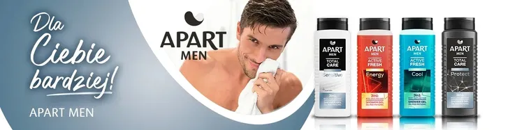 Nowa formuła męskich żeli pod prysznic 3 w 1 APART z serii TOTAL CARE pozostawi na skórze uczucie nawilżenia i zdrowy wygląd.