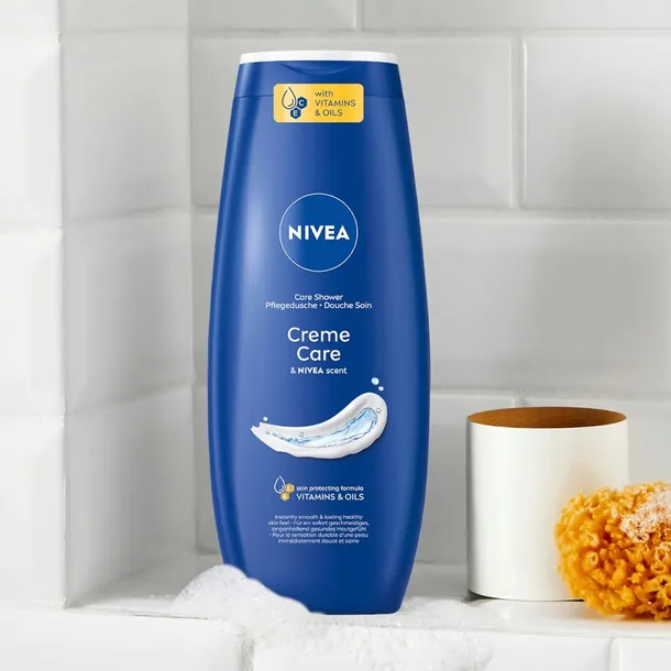 NIVEA Pielęgnujący żel pod prysznic Creme Care to rozpieszczający żel o kremowej konsystencji i unikalnym zapachu kremu NIVEA, który pozostawia skórę gładką i przyjemnie miękką w dotyku. Ten kremowy żel pod prysznic tworzy delikatną pianę, która nie tylko oczyszcza ciało i zapewnia wspaniały, dyskretny zapach, ale również pozostawia uczucie nawilżonej skóry. Tolerancja dla skóry potwierdzona dermatologicznie.