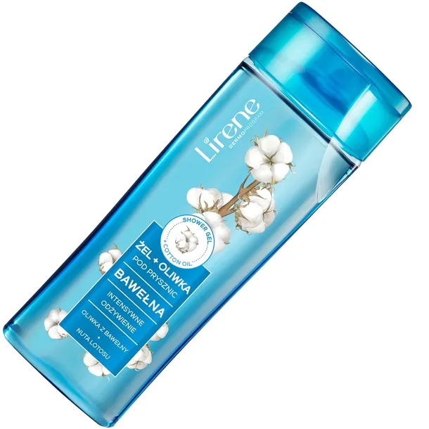 Shower Gel + Cotton Oil marki Lirene. Żel pod prysznic. Delikatnie, lecz skutecznie oczyszcza skórę z wszelkiego rodzaju zanieczyszczeń. Dodatkowo wykazuje działanie odżywiające, wzmacniające oraz nawilżające. Dzięki zawartości oliwki z bawełny w składzie wzmacnia barierę hydrolipidową naskórka, hamuje utratę wody oraz sprawia, że skóra nabiera miękkości i gładkości. Kosmetyk posiada przyjemny zapach lotosu, który orzeźwia i relaksuje.
