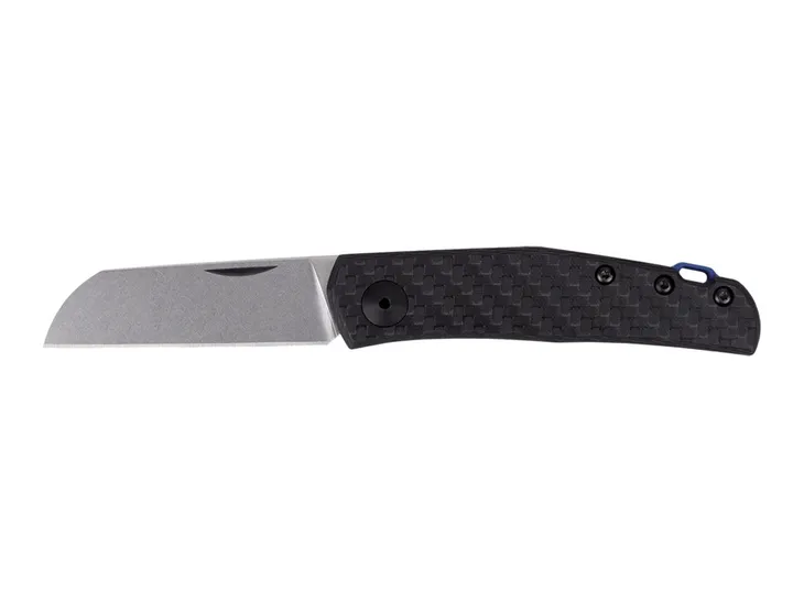 Ostrze ma CPM 20CV oferując wyjątkową twardość, odporność na zużycie, zachowanie krawędzi; wykończenie typu stonewash pomaga ukryć zadrapania. Ten nóż z przegubem ślizgowym ma podwójny system blokowania: dwie stalowe kulki, po jednej z każdej strony ostrza, utrzymują ostrze bezpiecznie zamknięte. Podkładki dystansowe są wykonane z anodyzowanego na niebiesko aluminium i mają mocowanie do smyczy. Ultralekka rękojeść wykonana jest z włókna węglowego.