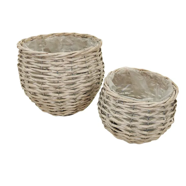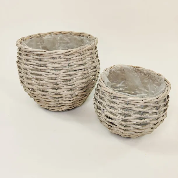 Zestaw 2 okrągłych osłonych wykonanych z wikliny, wyłożony folią to idealna baza do kompozycji i dekoracji. Świetni sprawdzi się jako osłonka do kwiatów domowych.