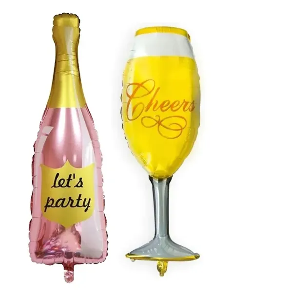 Zestaw balonów kieliszek butelka szampana hel złoty foliowe balony wesele