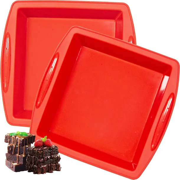 - [Rozmiar]Forma do brownie 20 cm długości, 20 cm szerokości i 5 cm wysokości. 2 sztuki silikonowych form w opakowaniu.