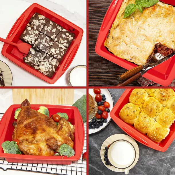 - [Zastosowanie]Silikonowa forma do brownie idealna do brownie, innych rodzajów ciast, warzyw, zapiekanek ziemniaczanych, pieczonych warzyw, quiche i lasagne.