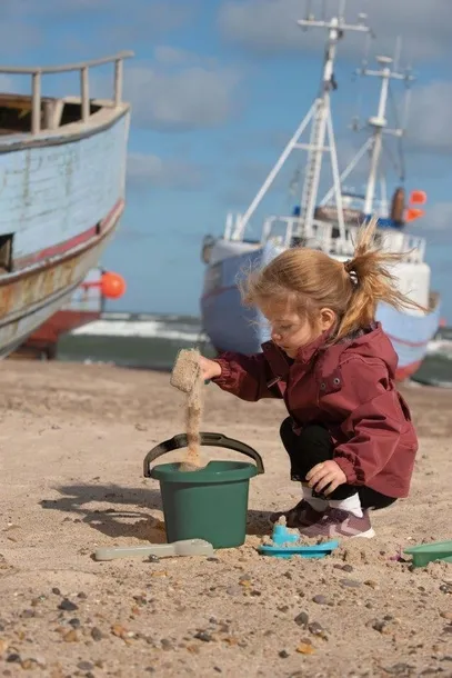 Zestaw składa się z 6 elementów: dużego wiaderka, małej łódki, grabek, łopaty, głębokiego sitka i foremki w pięknych kolorach Blue Marine i zapewnia wiele okazji do zabaw sensorycznych i eksploracji przyrody z piaskiem i wodą.