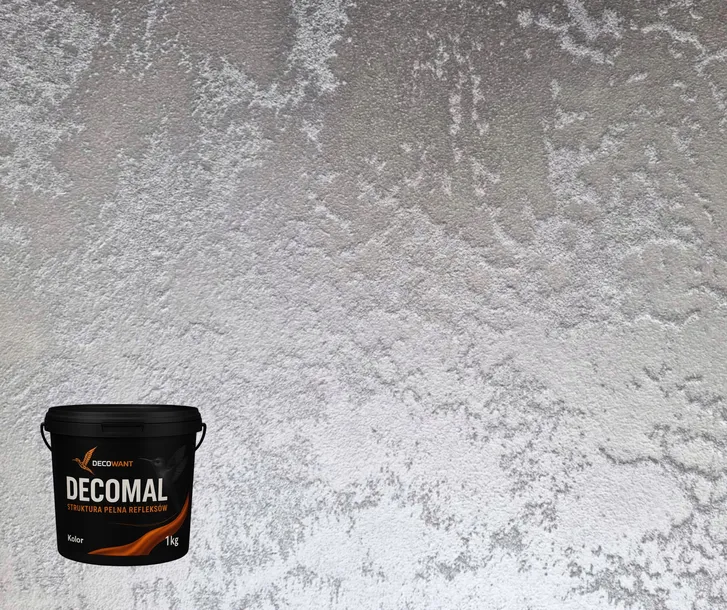 Ekskluzywna farba dekoracyjna DECOMAL w odcieniu szarym (metaliczny) to idealny wybór dla osób poszukujących eleganckiego, nowoczesnego wykończenia ścian. Zawarte w niej metaliczne, opalizujące kruszywo tworzy efekt migoczących refleksów, które subtelnie zmieniają się wraz z oświetleniem.