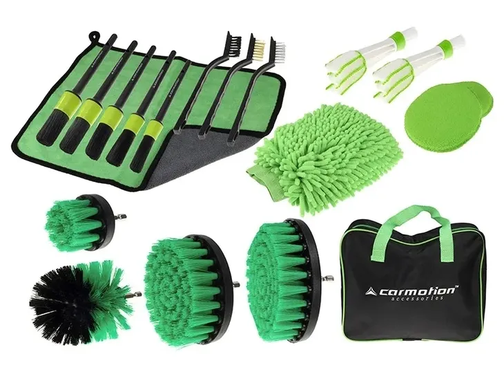 Komplet przyborów niezbędnych do dokładnego czyszczenia, pielęgnacji i osiągnięcia wysokiej jakości wykończenia pojazdu.
