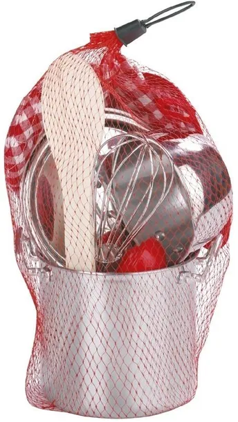 Wszystko wykonane z niezwykłą dbałością z najwyższej jakości stali nierdzewnej. Akcesoria kuchenne takie jak: łyżka drewniana, trzepaczka, 5 różnych miarek. Dodatkowo - rękawica i ściereczka.