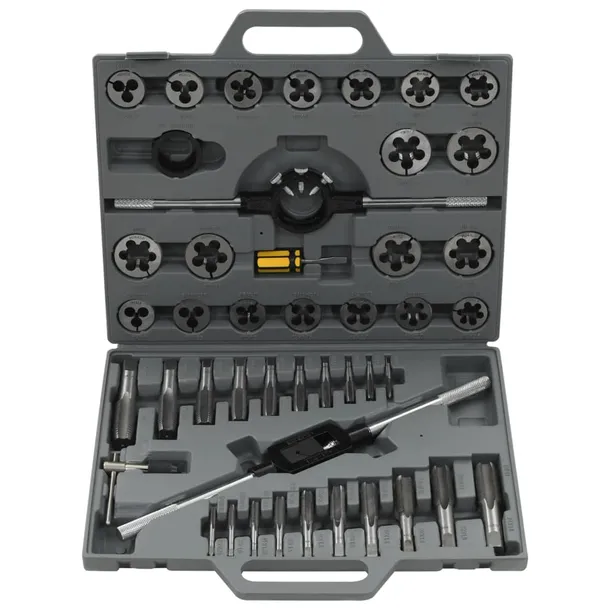 45 elementowy zestaw odpowiedni do czyszczenie i odcinania wewnętrznych i zewnętrznych gwintów śrub, znajdzie zastosowanie w warsztatach i garażach.