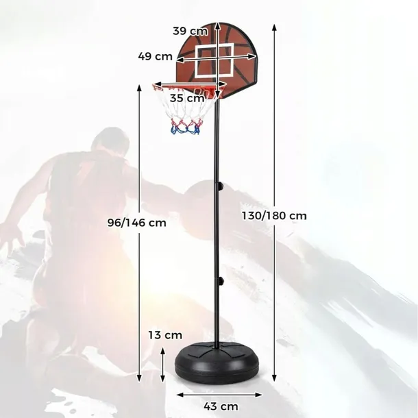 - Regulowana wysokość: Dzięki opcji regulacji wysokości obręczy od 96 do 146 cm, stojak można łatwo dostosować do wzrostu i umiejętności dziecka, co pozwala na długotrwałe użytkowanie zestawu.