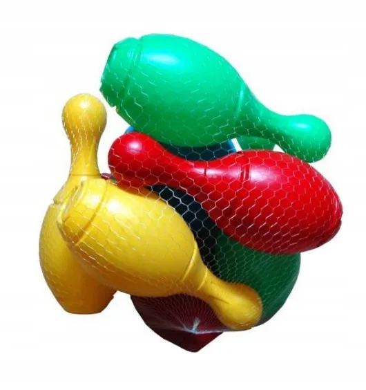 Zestaw zawiera: 6 szt. kręgli,( 2 szt. żółte, 2 szt. czerwone, 2 szt. zielone), kula do kręgli. Świetnie sprawdza się podczas zabaw na świeżym powietrzuorazwdomu.