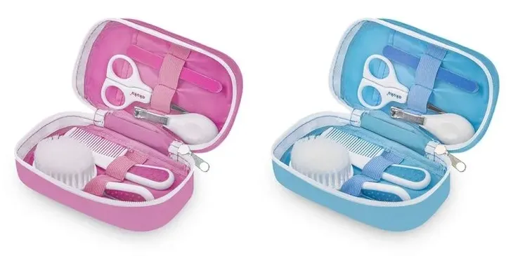Zestaw do pielęgnacji Twojego dziecka w wygodnej i praktycznej kosmetyczce. Nożyczki (o cienkich metalowych ostrzach i zaokrąglonych krawędziach) oraz cążki pomogą pewnie i bezpiecznie obciąć drobne paznokcie, a pilniczek z łatwością usunie nierówności paznokcia chroniąc dziecko przed zadrapaniem. Natomiast miękka szczotka oraz grzebyk z antypoślizgowym uchwytem pozwolą zatroszczyć się o główkę maleństwa. W celu zminimalizowania ryzyka niespodziewanego poruszenia się dziecka, zaleca się obcinanie paznokci podczas snu. Produkt dostępny w dwóch kolorach: niebieski i różowy.