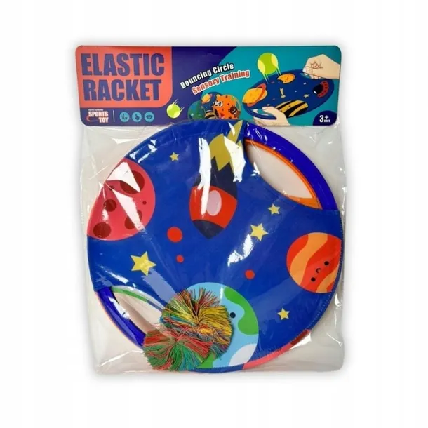 W skład zestawu wchodzą dwie obręcze oraz dwa elastyczne pompony do odbijania. Można odbijać samodzielnie ćwicząc koordynację ruchową lub grać w dwie osoby. Świetna propozycja do zabawy dla dzieci na zewnątrz. Średnica pomponów ok. 11 cm Średnica tarczy: 34 cm . Ilość elementów: 2 tarcze oraz 2 elastyczne pompony do odbijania. Kolor produktu: wielokolorowy.
