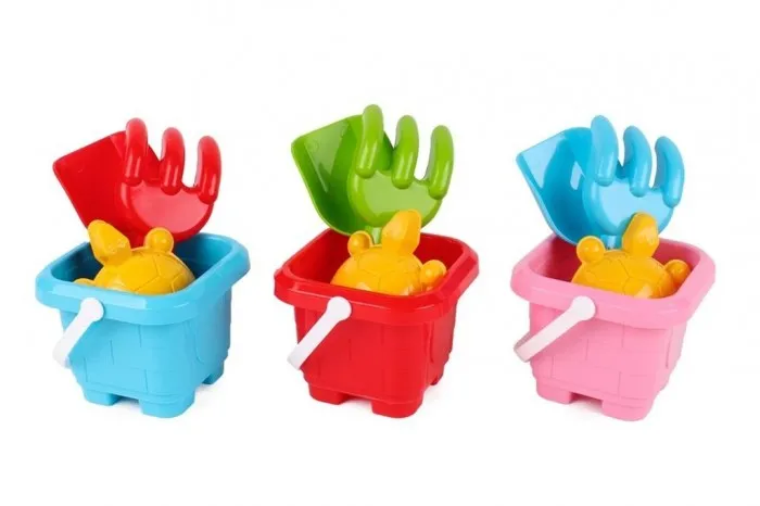 W zestawie znajduje się okrągłe wiadro, którego konstrukcja imituje murowanie średniowiecznej wieży. Rękojeść wiaderka jest miękka i elastyczna, nie zawiera drobnych elementów, dzięki czemu zabawka jest bezpieczna dla dzieci od 1 roku życia. Wielkość wiaderka została specjalnie zaprojektowana do wygodnego użytkowania przez małe dzieci.