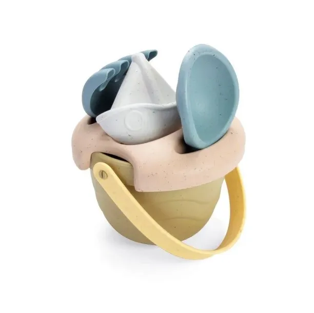 Nowa linia BIO TINY dla niemowląt powstała z myślą o najmłodszych. Dantoy zaprojektował serię zabawek, które nowo upieczeni rodzice mogą dać swoim pociechom z czystym sumieniem. Linia produktów „TINY” koncentruje się na zabawie, uczeniu się i stymulacji sensorycznej, umożliwiając jednocześnie wsparcie rozwoju dziecka. Naturalna jakość produktów pochodzi z bioplastiku z włókien trzciny cukrowej i bambusa. Ten ładny, mały zestaw kubełkowy nadaje się zarówno do zabawy w pojedynkę, jak i z innymi. Zabawa na zewnątrz w piaskownicy bądź na plaży wzmacnia rozwój sensoryczny dziecka. Maluch jest już gotowy na swój debiut w piaskownicy bądź plaży, a przede wszystkim w naturalnym środowisku na świeżym powietrzu! Zestaw zawiera wiaderko, łopatkę, grabki, piaskową foremkę z uroczym zwierzęcym motywem oraz sitko - które stanowi przykrycie wiaderka. Wszystkie części są w stonowanych, naturalnych kolorach. Zestaw do piasku BIO TINY produkowany jest w Danii z bioplastiku wykonanego z trzciny cukrowej, która w 100% jest zrównoważonym surowcem. To sprawia, że posiada certyfikat Nordic Swan Ecolabel. Produkty te są przyjazne dla środowiska i nie zawierają szkodliwych chemikaliów. Opakowania wykonane są z tektury z recyklingu.