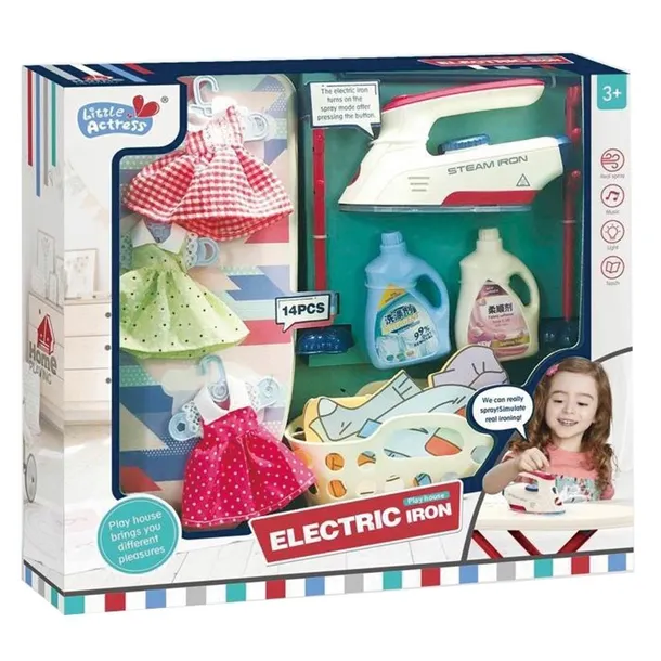 Zestaw do prasowaniaW zestawie deska do prasowania, żelazko, wieszak na ubrania, sukienki, kosz na pranie, butelki płynów do praniawymiary opakowania: 38 x 8 x 35.5 cmWiek 3+
