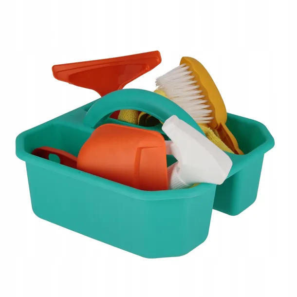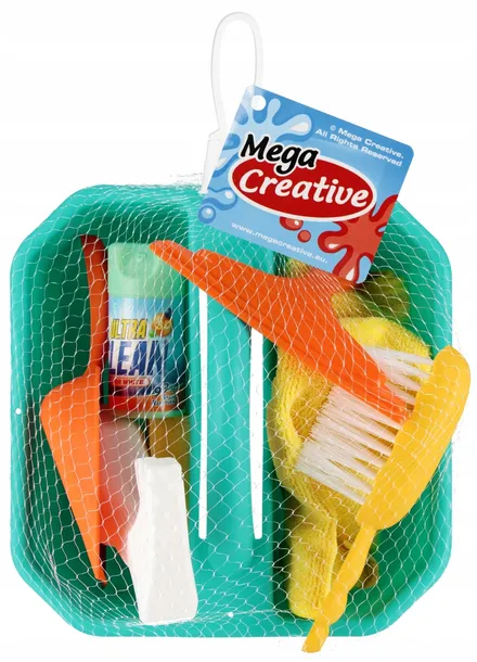 Zalety produktu: rozwija wyobraźnię dziecka, ćwiczy precyzję ruchową, uczy naśladowania czynności wykonywanych przez dorosłych, uczy dbania o porządek. Zestaw do sprzątania, który nauczy dzieci dbania o porządek, świetnie się przy tym bawiąc. Zawartość zestawu: szufelka, zmiotka, 1 butelki z płynem do sprzątania, spray do czyszczenia, gąbeczka do sprzątania, ściągaczka do mycia szyb, ściereczka do kurzu. Całość wykonana z plastiku, gąbki, włosia, materiału. Wymiary/waga/baterie: wymiary produktu dł. cm : miska 22x23x13, -zmiotka 17x6x4, -łopatka 12x16x4, wymiary opakowania dł. x wys. x gł. cm : 22x23x13, waga produktu bez opakowania kg : 0,28 kg, waga produktu w opakowaniu kg : 0,28 kg, nie wymaga zasilania bateriami. Zestaw przeznaczony dla dzieci w wieku: 3 . Zestaw pakowany w siatkę. W kartonie zbiorczym 32/64szt.