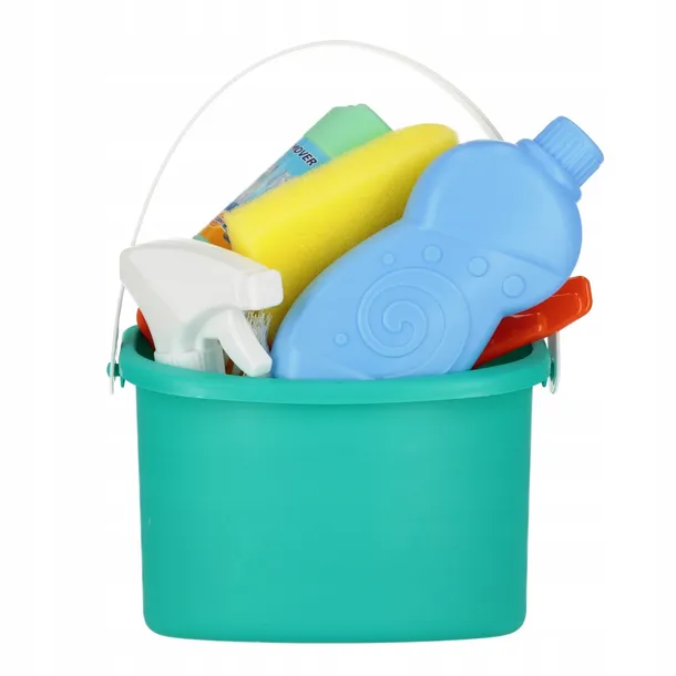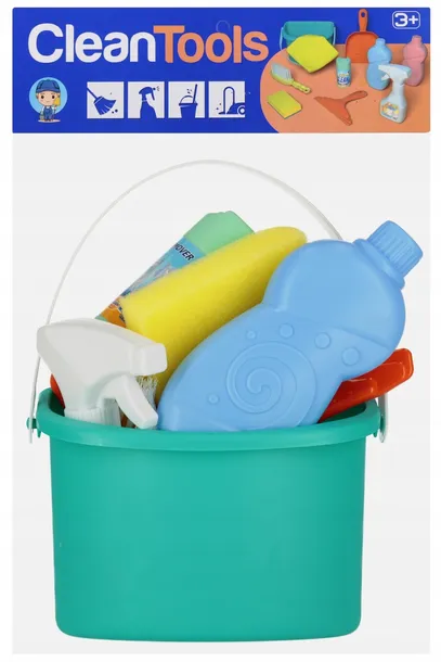 Zalety produktu: rozwija wyobraźnię dziecka, ćwiczy precyzję ruchową, uczy naśladowania czynności wykonywanych przez dorosłych, uczy dbania o porządek. Zestaw do sprzątania, który nauczy dzieci dbania o porządek, świetnie się przy tym bawiąc. Zawartość zestawu: wiaderko, zmiotka szufelka, ściągaczka do szyb, gąbka, 3x środki do czyszczenia. Całość wykonana z plastiku, gąbki i włosia. Wymiary/waga/baterie: wymiary produktu dł. x wys. x gł. cm : wiaderko 18x13x11, wymiary opakowania dł. x wys. x gł. cm : 26x36x11, waga produktu bez opakowania kg : 0,21 kg, waga produktu w opakowaniu kg : 0,23 kg, nie wymaga zasilania bateriami. Zestaw przeznaczony dla dzieci w wieku: 3 . Pakowany w woreczek z zawieszką. W kartonie zbiorczym po 40/80 szt.