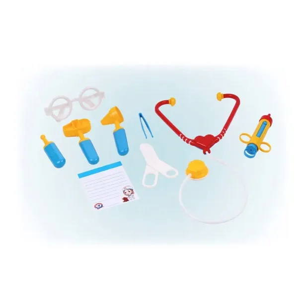 W zestawie 9 najpopularniejszych instrumentów. Wśród nich są: strzykawka, termometr, fonendoskop itp.