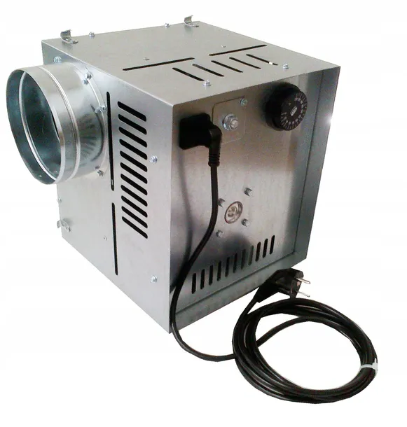 Posiada odizolowany termicznie i akustycznie wentylator nadmuchujący powietrze oraz termostat.