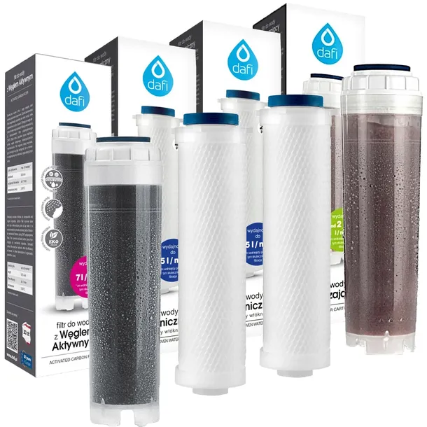 ✅Każdy z filtrów przepływowych Dafi ma różne właściwości i oczyszcza wodę z innych substancji.