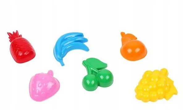 W tym zestawie znajduje się 6 kolorowych foremek, każda o innym, wyjątkowym kształcie owocu. Foremki będą doskonałym uzupełnieniem zestawu zabawek, ale także świetnie sprawdzą się solo, gdyż mogą pełnić też inne funkcje. Przy użyciu wyobraźni każda zabawka może mieć niejedno zastosowanie.