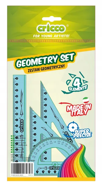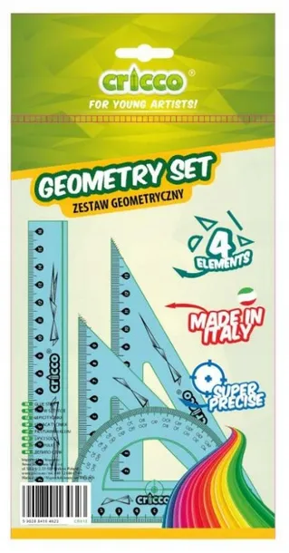 Zestaw geometryczny 4 elementy z linijką 16 cm- Praktyczny i funkcjonalny zestaw artykułów kreślarskich z wysokiej jakości tworzywa- Nieścieralna podziałka i precyzyjny nadruk skali (do 1/1000 cm)- Zestaw dostępny w czterech kolorach z czarnym nadrukiem- Dla łatwiejszego odczytu na kolorowym tle główne jednostki miary zostały pogrubione- Zaokrąglone rogi dla bezpieczeństwa użytkownika- Plastik o odpowiednim stosunku twardości do elastyczności zapewniający wysoką odporność na złamania- Zestawy do użytku zarówno szkolnego, biurowego, jak i w profesjonalnych biurach technicznych- Zestaw zawiera: linijkę 16cm, ekierkę ze skalą 10 cm i 14 cm, kątomierz 180 stopni.