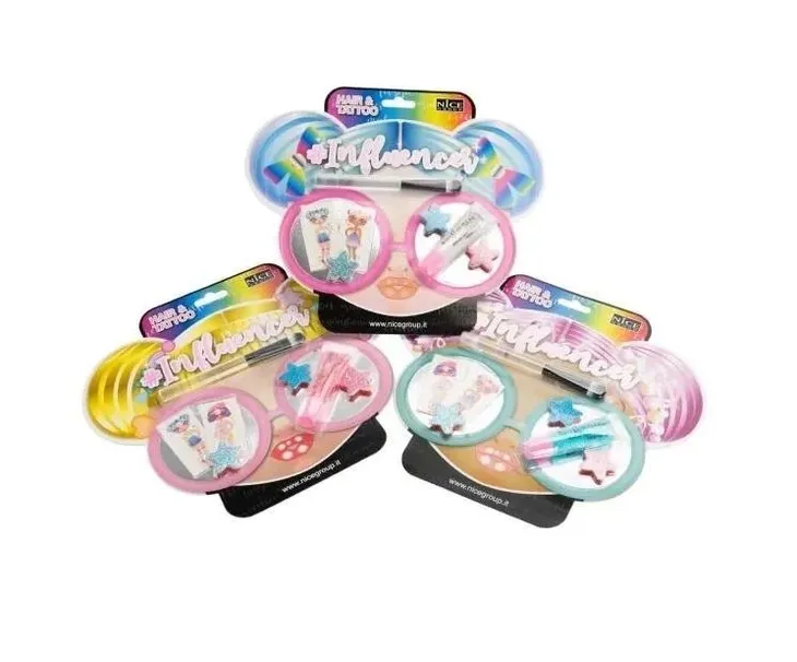 Spraw, aby Twoje włosy błyszczały! Zestaw zawiera: 2tatuaże, brokatowy żel do włosów, pędzelek i 3 błyszczące gwiazdki do włosów. Bezpieczny, przetestowany produkt.