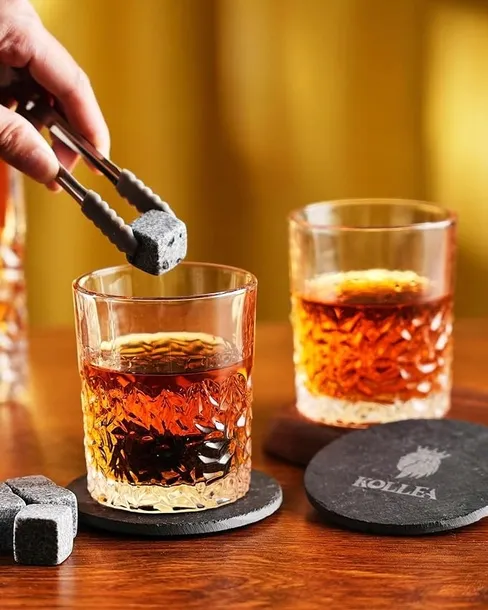 - Szkło bezołowiowe: Wykonany ręcznie ze szkła bezołowiowego, aby spełnić rygorystyczne standardy jakości spożywczej, ten dekanter jest nie tylko wykwintny, ale także bezpieczny dla Twojej przyjemności. W zestawie znajdują się dwie kamienne podstawki, zapewniające nieskazitelną przejrzystość kubków do whisky, a jednocześnie chroniące je przed przypadkowymi zarysowaniami.