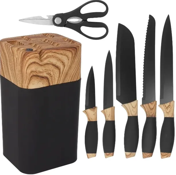 ZESTAW KOMPLET 5 NOŻY KUCHENNYCH + BLOK NOŻYCZKI 7 ELEMENTÓW SUPER OSTRE 3775