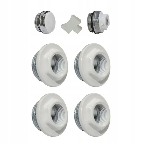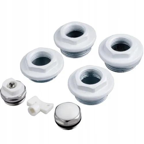 - W zestawie komplet korków grzejnikowych, redukcyjnych 1"x1/2, odpowietrznik mechaniczny 1/2, korek zaślepiający ½