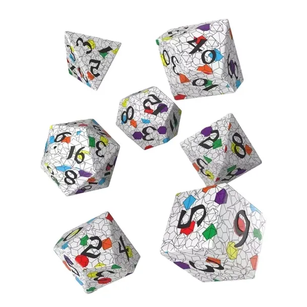 Zestaw kości Full Art: Origin to wyjątkowy zestaw, który oddaje hołd wielościanom – idealnym kształtom, symbolom porządku i nieskończoności. Hipnotyzujące wzory z motywem konturów brył to prawdziwa uczta wizualna, gdzie każdy rzut odkrywa nowy wymiar piękna i perfekcyjnej symetrii.