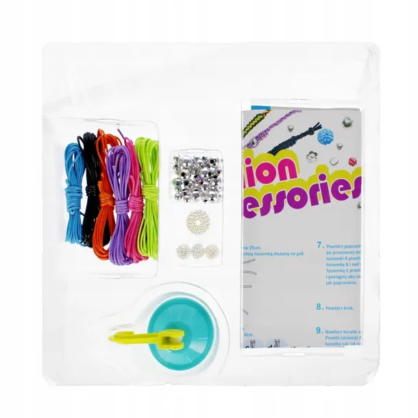 Zalety produktu: możliwość skomponowania własnej bransoletki, kolorowe koraliki oraz mulina. Zestaw kreatywny bransoletki od MEGA CREATIVE do stworzenia własnej bransoletki to propozycja dla każdej modnisi. Możliwość skomponowania własnej niepowtarzalnej bransoletki, którą mała dama będzie nosić z dumą Bransoletka do zrobienia do wyboru żyłka w różnych kolorach lub koraliki w różnym kolorze. Zawartość zestawu: 6x żyłka kolorowa, maszynka do robienia bransoletek, koraliki w różnych wielkościach i kolorach, instrukcja. Wymiary/waga/baterie: wymiary produktu dł. x wys. x gł. cm : -maszynka 5x4x3 wymiar opakowania dł. x wys. x gł. cm : 23x23x5, waga produktu bez opakowania kg : 0,09 kg, waga produktu w opakowaniu kg : 0,17 kg, nie wymaga zasilania bateriami. Zestaw przeznaczony dla dzieci w wieku: 3 . Pakowany w kartonik z okienkiem. Pakowanie karton zbiorczy po 36/72 szt.