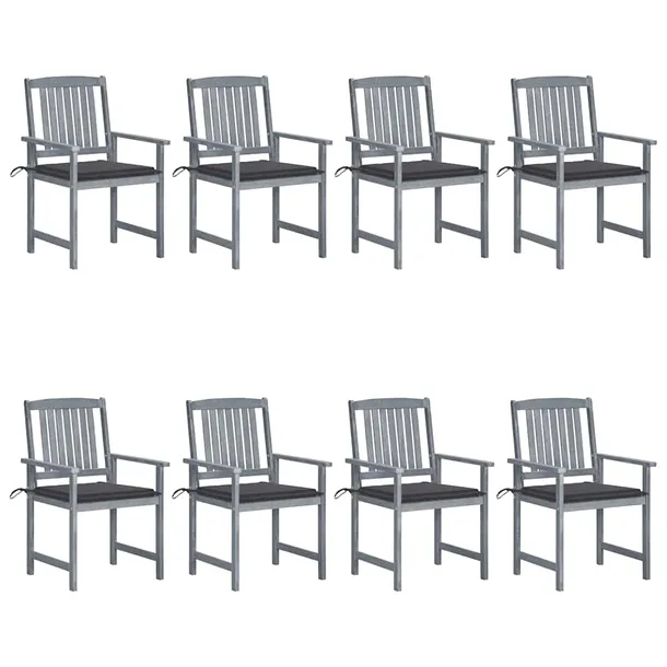 Zestaw krzeseł ogrodowych wykonano z poszarzanego, litego drewna akacjowego, które jest twardym drewnem o gęstych słojach. Jest ono wytrzymałe na obciążenia i odporne na zużycie i upływ czasu. Ten drewniany zestaw krzeseł jest stabilny, trwały i odporny na warunki atmosferyczne. Dodatkowo powierzchnię mebli można łatwo wyczyścić wilgotną ściereczką. Dołączone poduszki oferują większy komfort.