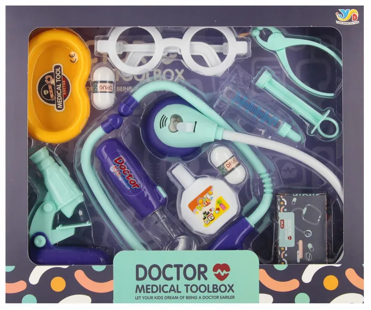 Zalety produktu: pobudza wyobraźnie dziecka, nauka opieki nad chorym, rozwija kreatywność dziecka, posiada efekty dźwiękowe oraz świetlne- stetoskop posiada odgłos bicia serca oraz pulsującą czerwoną lampkę. MEGA CREATIVE przedstawia Zestaw Lekarski ze wszystkimi niezbędnymi przyrządami lekarskimi. Z tym zestawem, wszyscy pacjenci zostaną wyleczeni Zestaw występuje w dwóch wersjach kolorystycznych. Zawartość zestawu: stetoskop, miska na narzędzia, młoteczek ze światłem, strzykawka, 2x butelka z lekami, opakowanie na leki, 2x pigułki, lusterko dentystyczne, 2x nożyk lekarski, nożyczki. Całość wykonana z plastiku oraz kartonu. Występuje w dwóch wersjach. Wymiary/waga/baterie: wymiary produktu dł. x szer. cm : stetoskop- 52x13, wymiary opakowania dł. x wys. x gł. cm : 30x25x4, waga produktu bez opakowania kg : 0,14 kg, waga produktu w opakowaniu kg : 0,22 kg, wymaga zasilania bateriami 5 x AG10- załączono do zestawu. Zestaw przeznaczony dla dzieci w wieku: 3 . Pakowany w kartonik z okienkiem. W kartonie zbiorczym po 36/72 szt.