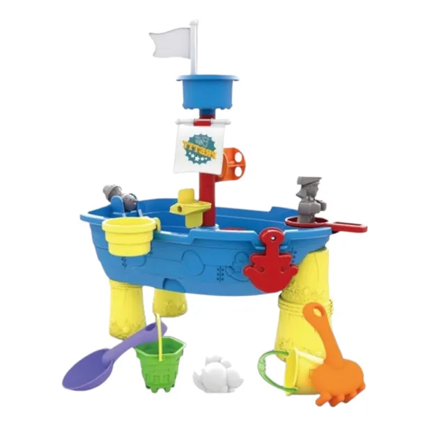 Stolik statek piracki może być wykorzystywana zarówno w piasku jak i w wodzie. Posiada rozbudowaną zjeżdżalnię wodną w postaci masztu z flagami.