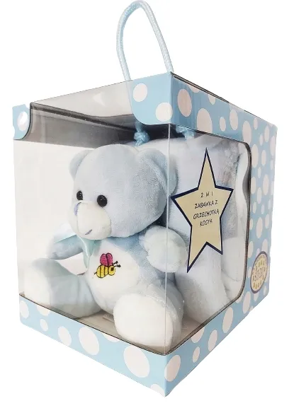 Zestaw maskotka grzechotka kocyk z misiem dla dziecka