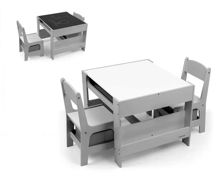 Zestaw mebli - Stolik i dwa krzesełka Sven Grey Stolik z krzesełkami, dodatkowe szufladki, tablica do malowania