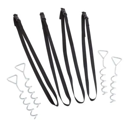 A rögzítő szettel ideálisan rögzítheted a trambulint a talajhoz, ami viszontagságos időjárás esetén különösen fontos!