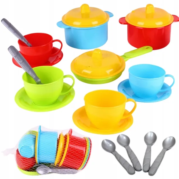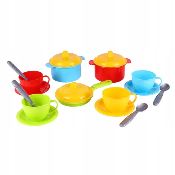 Zestaw kuchenny to wejście malucha do magicznego świata gotowania i kulinarnych eksperymentów. Zestaw niezbędnych przyborów kuchennych z pewnością będzie ulubioną zabawką każdego malucha i zapewni niezapomniane chwile radości.W zestawie znajdują się akcesoria kuchenne, które przyciągają uwagę maluchów intensywnymi kolorami, ale także niesamowitym realizmem. Każdy element zestawu został starannie wykonany z wytrzymałego tworzywa, gwarantując trwałość i bezpieczeństwo podczas intensywnej zabawy. Do zestawu dołączone są dwa garnki z pokrywkami, patelnia, talerze, filiżanki i łyżeczki. Wszystko jest w idealnym rozmiarze dla małych rączek. Dokładnie odwzorowane detale sprawiają, że kuchnia staje się miejscem, gdzie każdy maluch czuje się jak prawdziwy szef kuchni. Zestaw zawiera:2 garnki z pokrywkami,patelnia z pokrywką,4 filiżanki,4 łyżeczki,4 talerzykiZestaw kuchenny zapewnia rozwój zdolności motorycznych, zdobywanie podstawowej wiedzy o przedmiotach codziennego użytku, a także podstawowe zasady współpracy i dzielenia się.Wymiary: 23x19x11cm