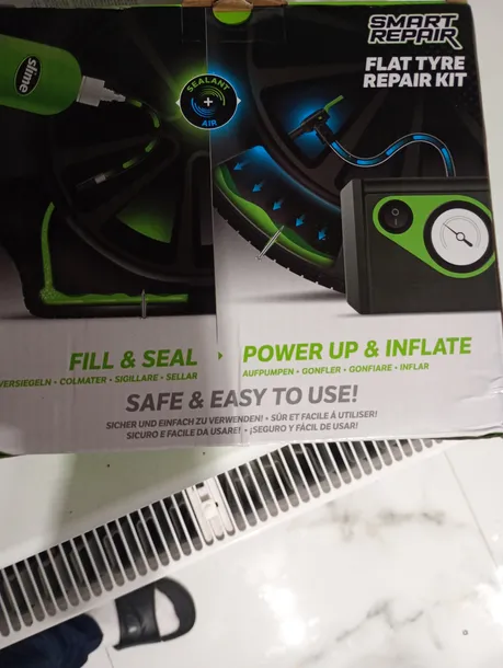 Zawiera płynny uszczelniacz i kompresor 12V.