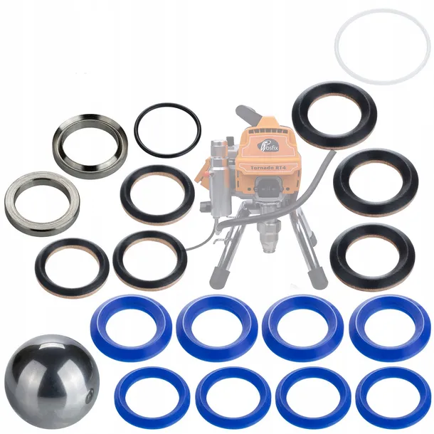 ✅ Kompleksowość: Zestaw zawiera wszystkie niezbędne części zamienne i narzędzia do przeprowadzenia podstawowych napraw i konserwacji pompy w agregacie Rosfix Tornado RT4.