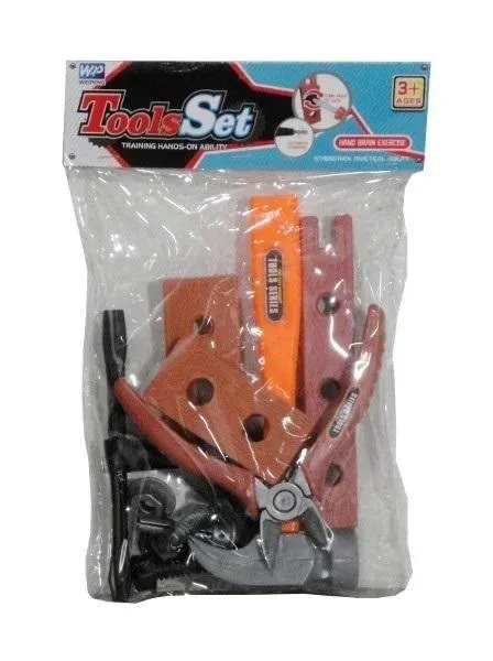 Zestaw podstawowych narzędzi dla małego majsterkowicza jak: młotek, kombinerki, deseczki oraz śruby. Produkt zapakowany w przezroczysty worek. Produkt przeznaczony dla dzieci od 3 lat. Podane wymiary są wymiarami opakowania.